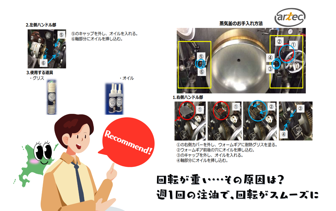 今回は、蒸気回転釜の注油方法についてご案内いたします。