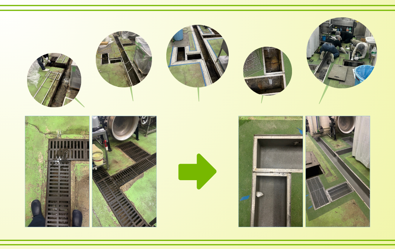 【夜間施工】厨房の排水溝を改修。安全性と清掃性を2日で改善